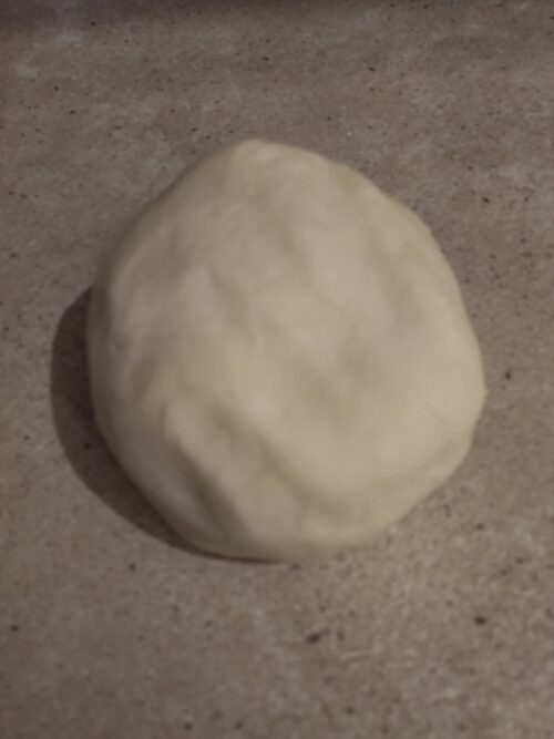 • Place all the ingredients on a work surface, start kneading, and then add the flour. Knead all the ingredients, not too much, it should be worked quickly. Wrap it in cling film and place it in the fridge for about half an hour.