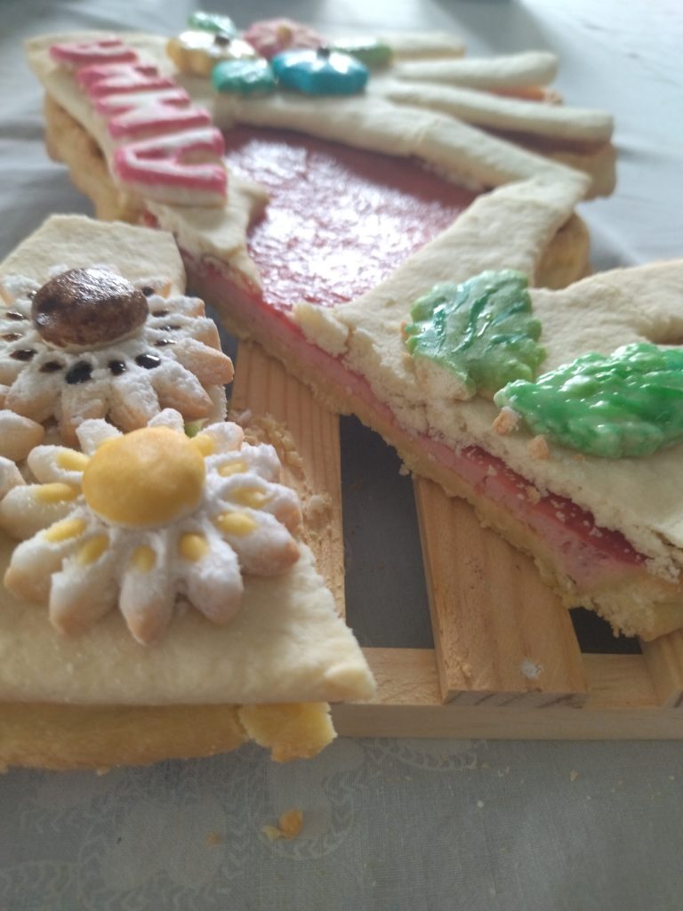 • Also cut out the decorations, flowers, leaves, the word ‘mom’, you can let your creativity run wild. Bake at 340°F for about 10-12 minutes. Always check during baking. This will be the lid of your tart.