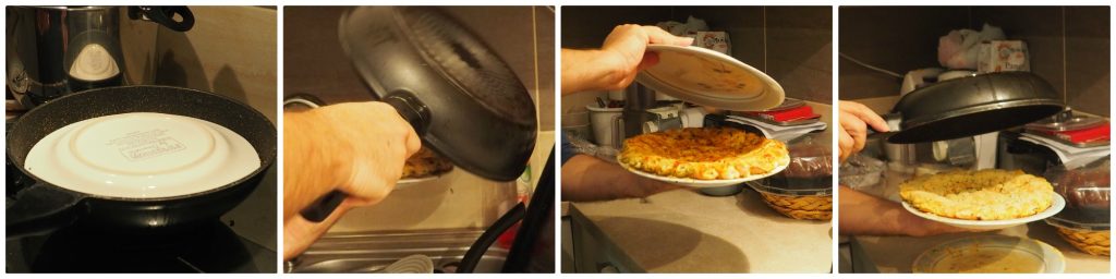 Now flip the shrimp using the same technique used before to place them in the pan: place the plate over the pan, turn the shrimp onto the plate, with another plate flip them with the side to be cooked facing up, return to the pan and continue cooking.