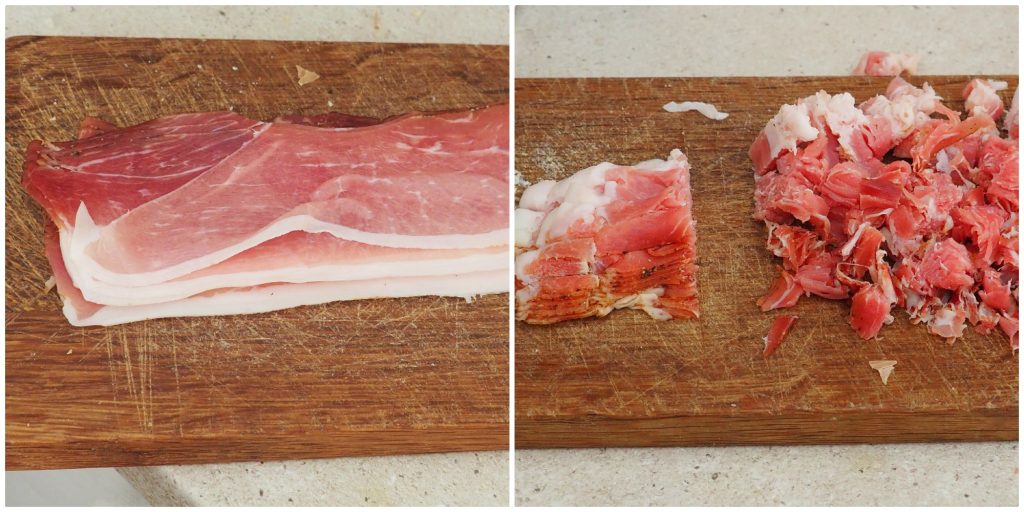 • Sauté the sliced speck in a hot pan.