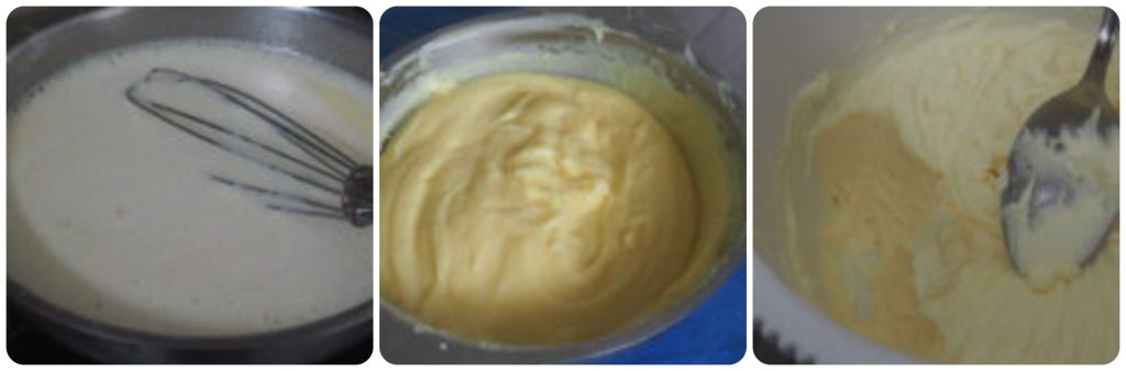 Now cover it with plastic wrap and let it cool completely. Once cold, transfer the cream to the mixer bowl, gradually add the remaining softened butter and whip with the beaters. Put the container in the fridge for at least an hour.