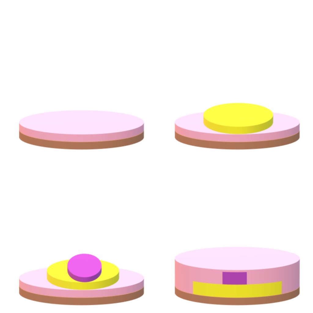 Pour the remaining strawberry mixture inside the cake pan, covering the entire yellow and purple discs. Externally, the cheesecake will appear only pink.