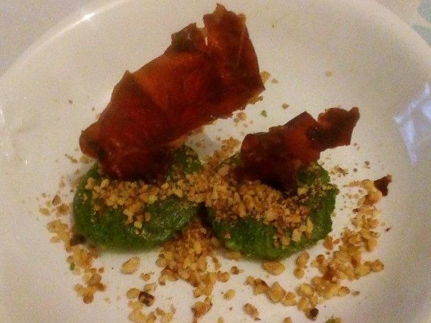 Garnish with crispy prosciutto pieces and crumbled toasted walnuts.