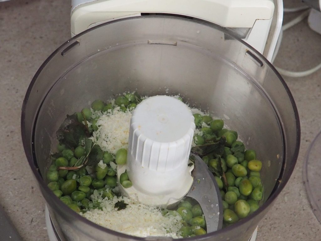 Add 3 tablespoons of grated Parmesan and start the blender.