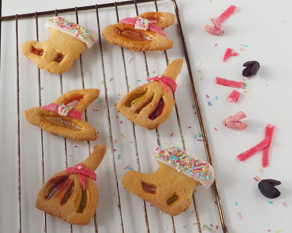 I love glass cookies, I really like the transparent effect, but also the unique taste that both fruit candies and gummy bears used to fill them give. I wanted to try to recreate this idea by making these Transparent Befana Cookies, which I completed with marshmallow fondant.