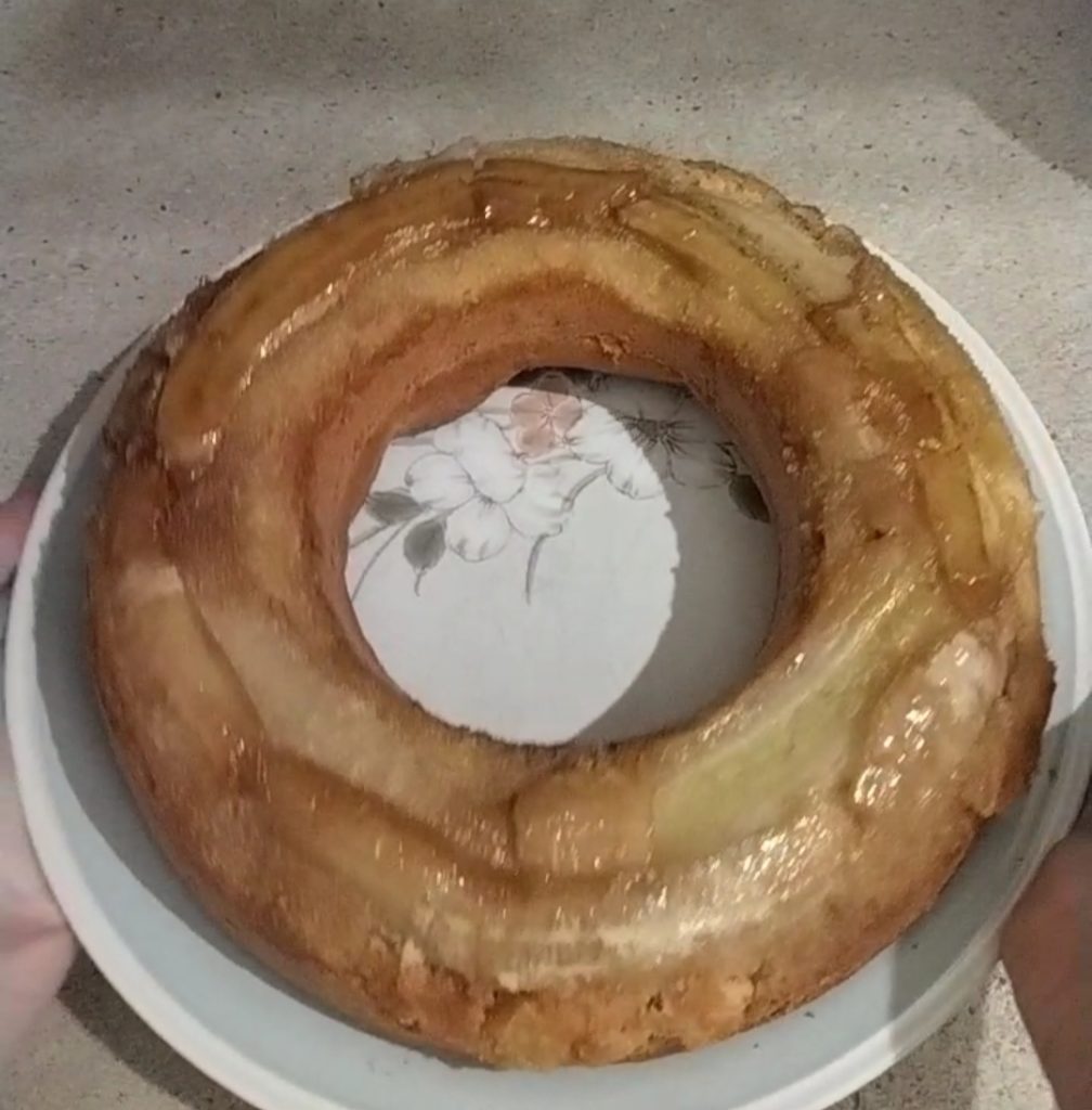 Butter and flour the edges. Butter and flour the inside of a 10-inch diameter bundt pan. Immediately pour in the caramel to prevent it from hardening.