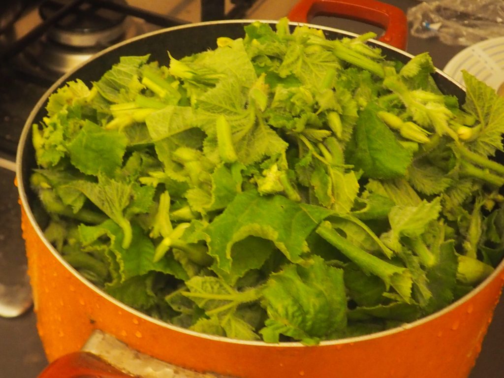 Pumpkin and zucchini shoots or tips are the tenderest part of the stem, i.e., the leaves, twigs, and flowers at the ends of the plant.