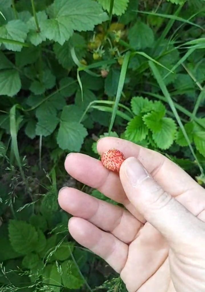Wild strawberries usually hang towards the ground, as their weight causes them to turn downwards.