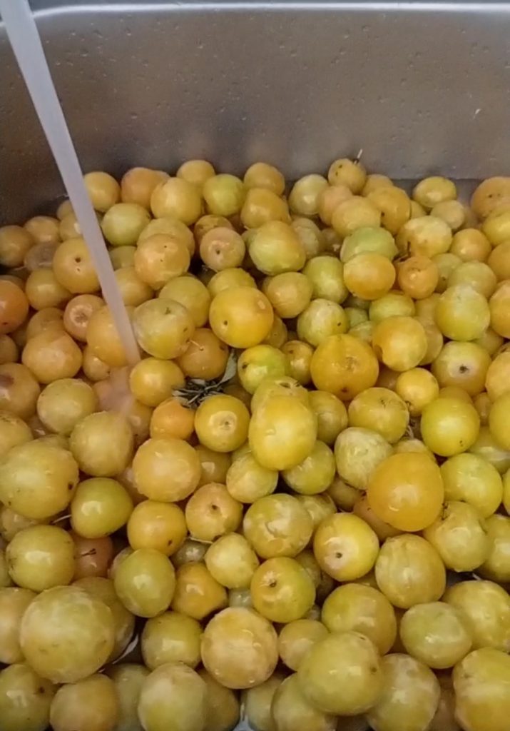 After picking them, rinse the plums well and discard those that are no longer good. Place them on a towel and dry them.