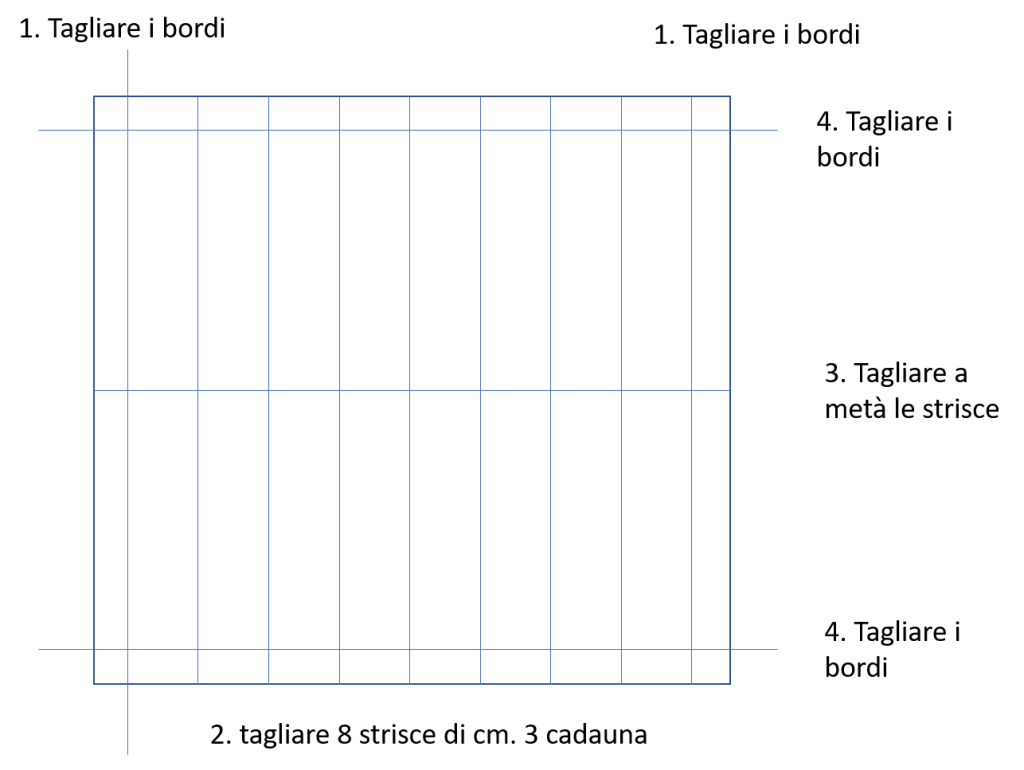 Cut these strips in half and remove the remaining edge (follow the picture).