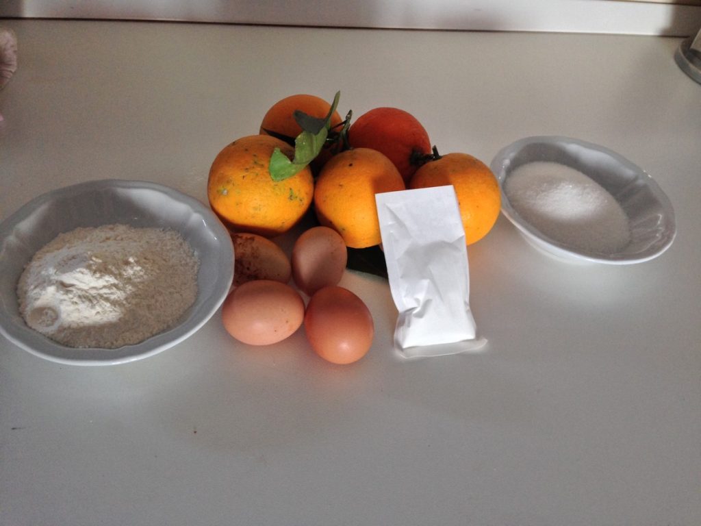 • In a bowl, beat the eggs with the sugar and grated orange zest. Slowly add the orange juice, sifted flour, and baking powder together. When the mixture is smooth, pour it into the pan; I prefer aluminum ones because they conduct heat more evenly.