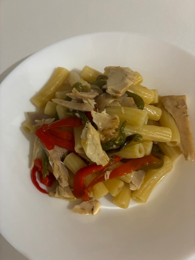 Let’s put the water for the pasta and cut the bell peppers into julienne and the onion into relatively thick slices. In a pan, add 4 tablespoons of extra virgin olive oil and sauté the onion; as soon as it starts to wilt, add the bell peppers, lower the heat, and cook covered with a lid. Remove the tuna from the oil and flake it coarsely with a fork. Once the bell peppers have wilted, add the tuna and continue cooking by adding a few tablespoons of the tuna’s reserved oil.