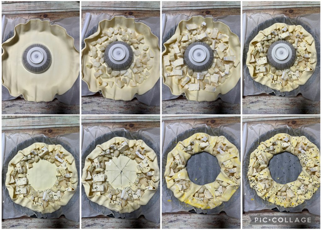 Using the tip of a sharp knife, make 4 cuts in an x shape on the free pastry to create 8 triangles that we will fold inward. See PHOTO.