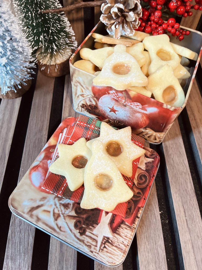 Our crumbly cookies to give at Christmas are ready. Package them in a tin box or in themed Christmas bags.