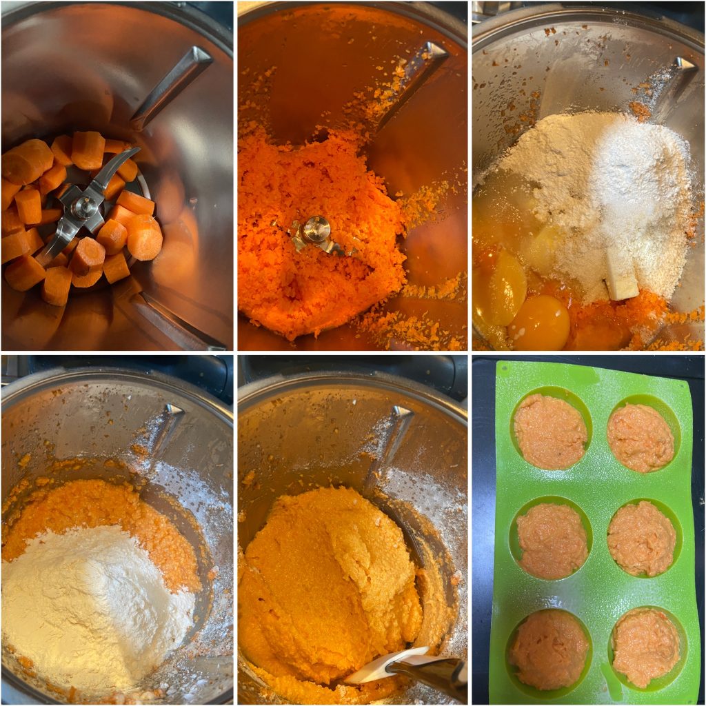 If you want to prepare the carrot and almond cupcakes without the Bimby, you just need to chop the carrots and almonds with a food processor and then mix the batter with electric beaters following the order of the previous steps.