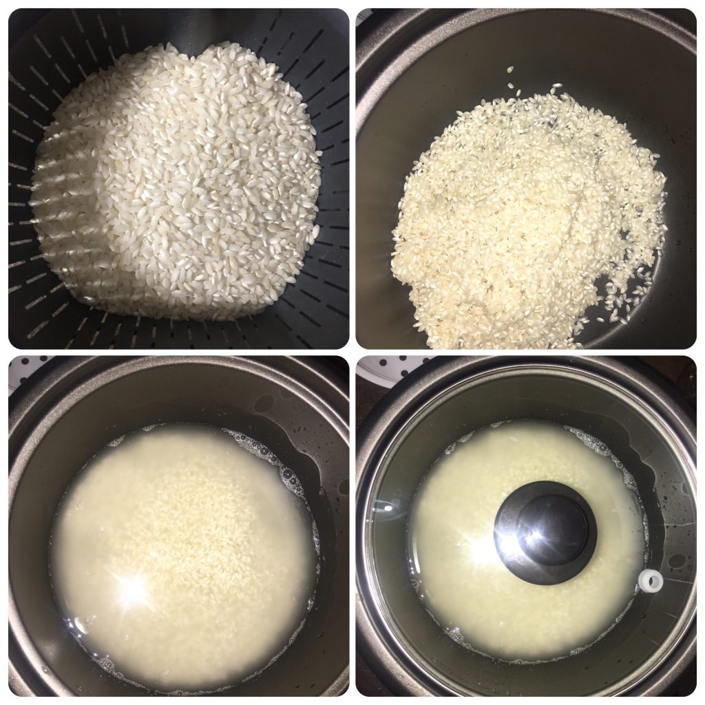 Take the rice and wash it very well in cold water until all starch residue is removed. After several rinses, the water should be clear.
