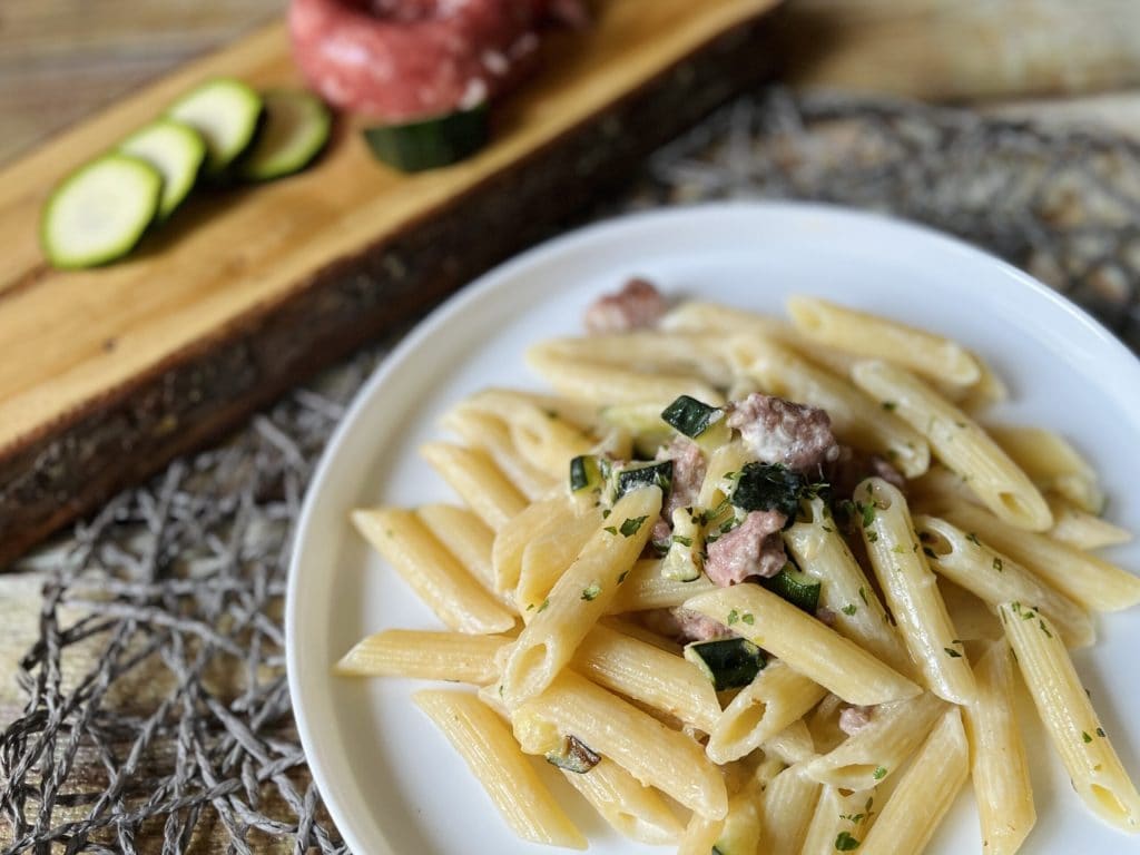 Penne with Sausage and Zucchini. A creamy and flavorful main dish!