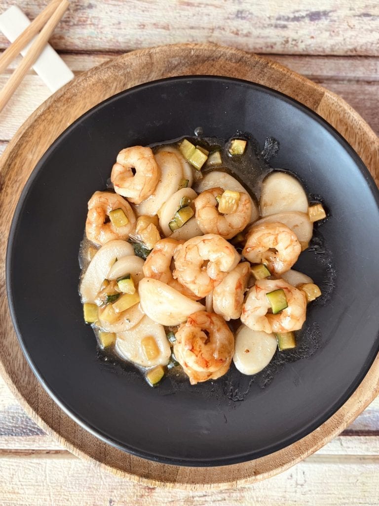 And thank goodness! Because it turned out to be a delicious discovery: I liked them so much that I immediately wanted to try them at home, pairing them with shrimp, zucchini, and a touch of teriyaki sauce.