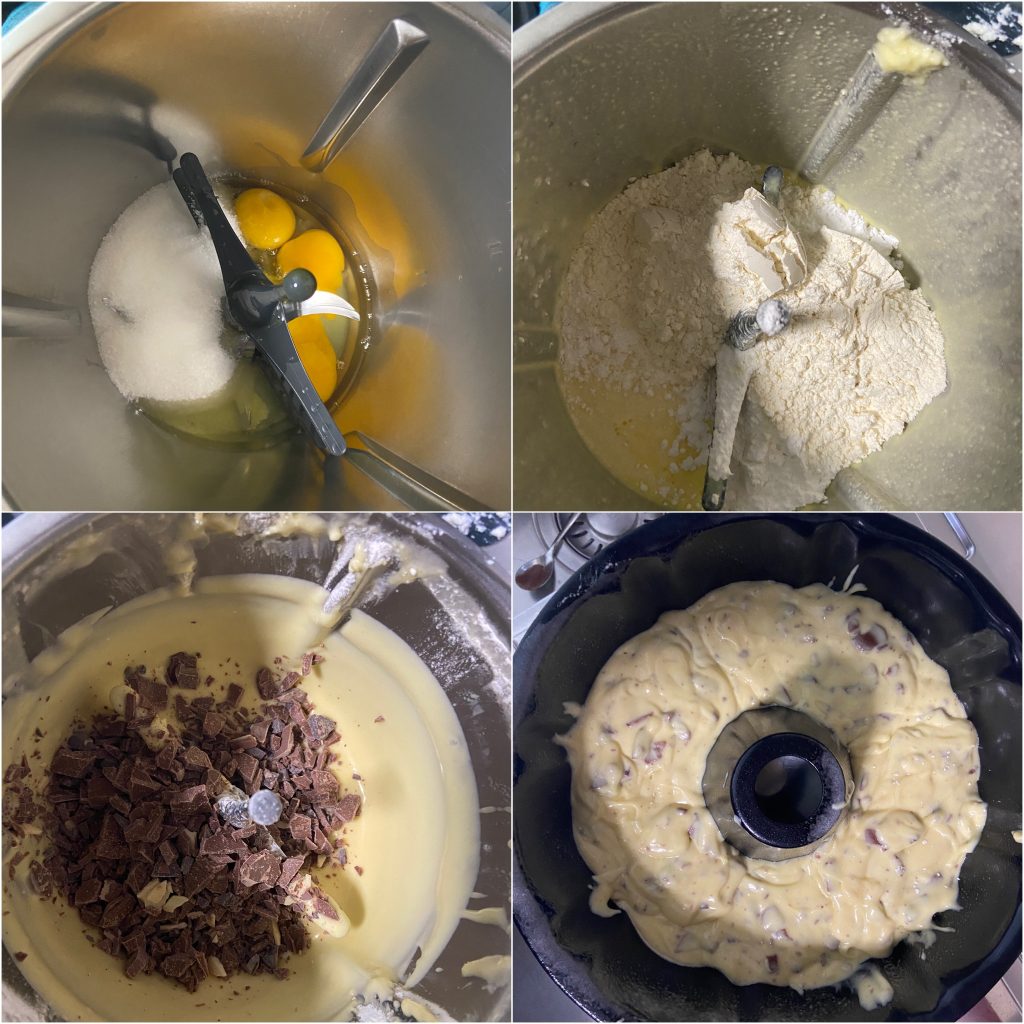 Add the previously chopped chocolate and mix for 30 seconds at speed 4 with counter-clockwise activated.