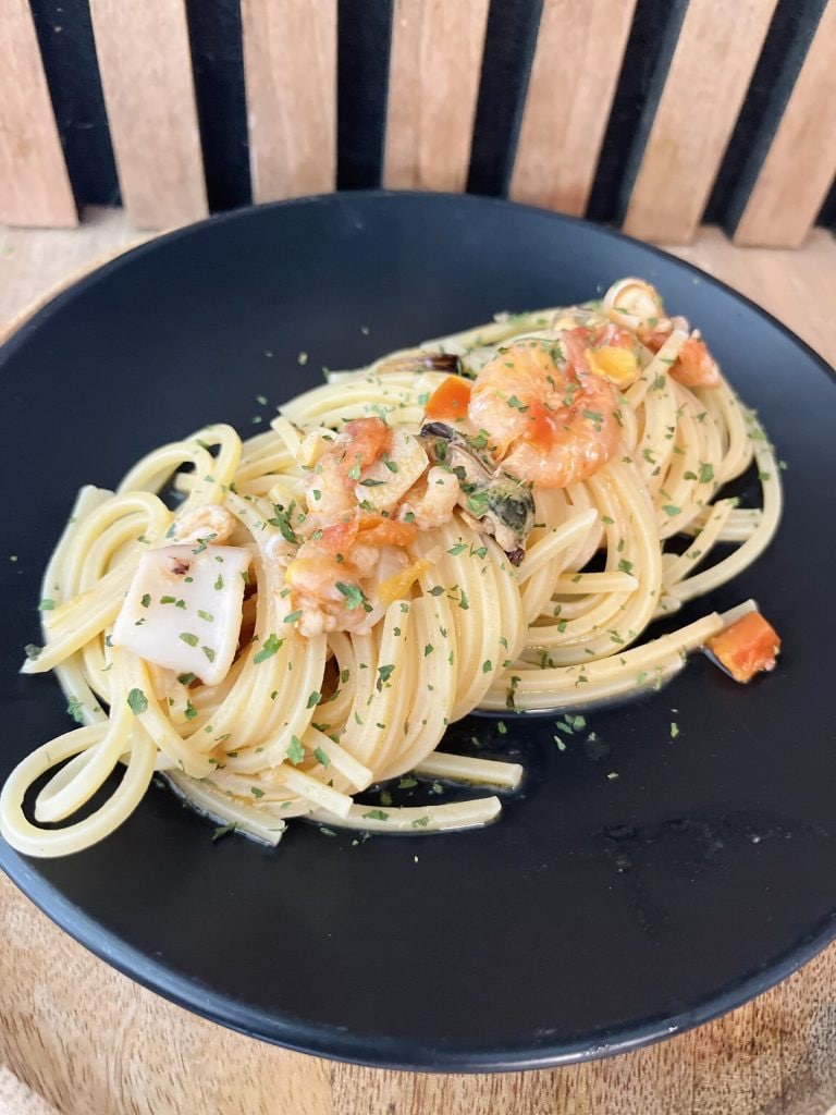 The frozen seafood mix, on the other hand, is a precious ally: always available, practical, and ready to use, without the hassle of having to clean fresh fish. With it, you can prepare an elegant, fragrant, and rich dish with a sea flavor in a few minutes, perfect to impress without stress.