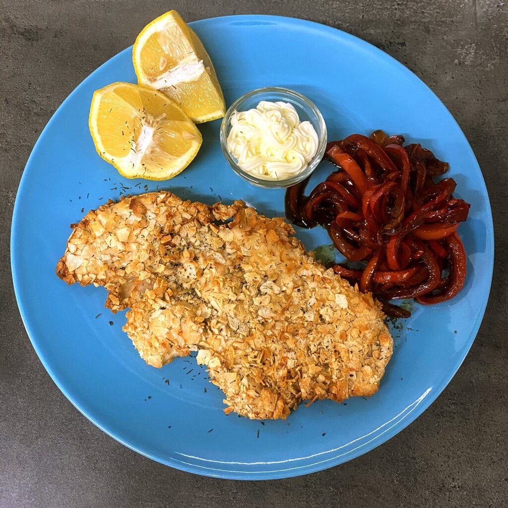 Super crunchy chicken cooked in an air fryer and breaded with carasau bread for an ultra-crispy result! A well-executed experiment that lets you appreciate chicken in a different way.
