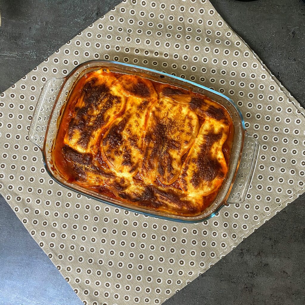The preparation is quite simple and fast and doesn’t require any special skills or ingredients. In this version with tomato, salami, and smoked scamorza, I decided to cook in an 8L air fryer where I put the baking dish inside, saving time compared to classic oven cooking.