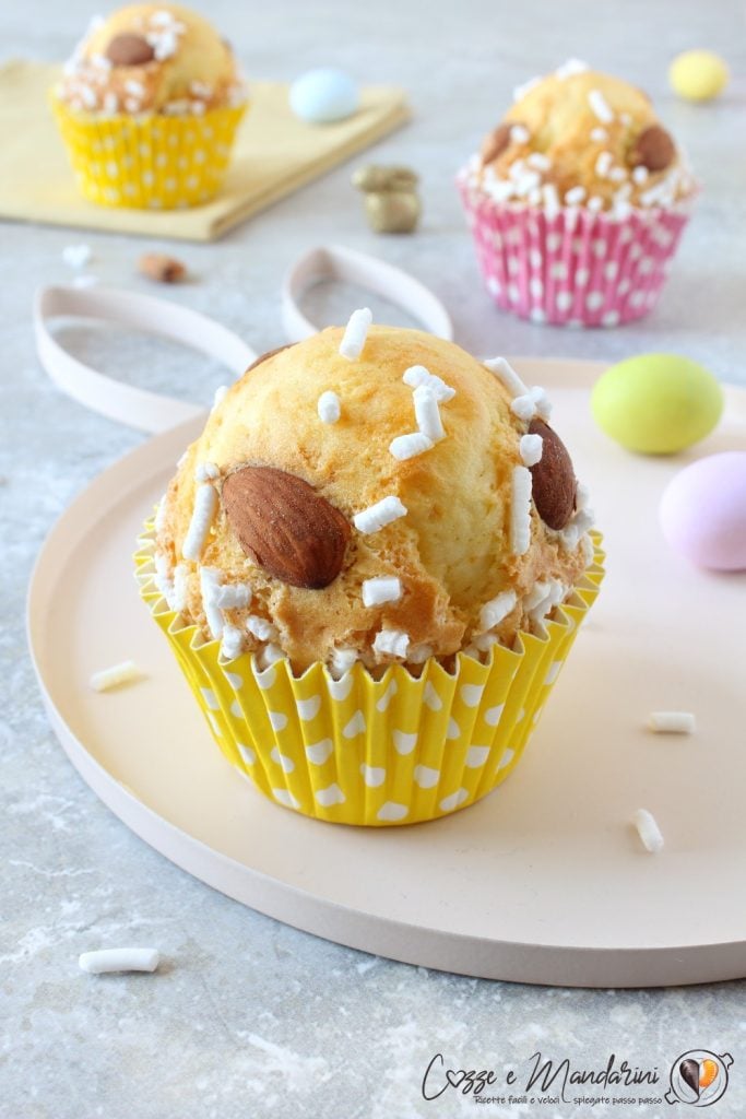 – As I mentioned, for an even more indulgent version of this recipe, you can add chocolate chips to the mixture instead of candied fruit. Or you can skip adding anything, your colomba-muffins will be delicious just the same.