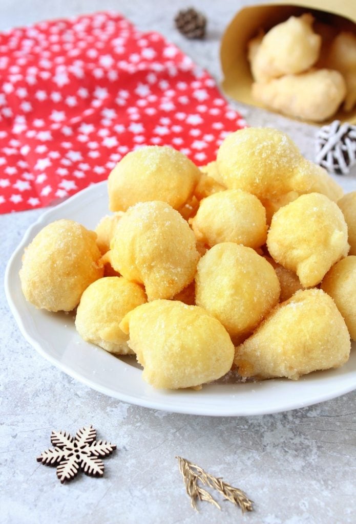 They are made with very few and simple ingredients, basically flour, water, and fresh yeast, and as I mentioned earlier, with the same dough you can make both savory pettole, which are usually enriched with various ingredients (including olives, capers, tuna, sun-dried tomatoes) and sweet pettole, by rolling them in granulated sugar after frying or drizzling them with honey.