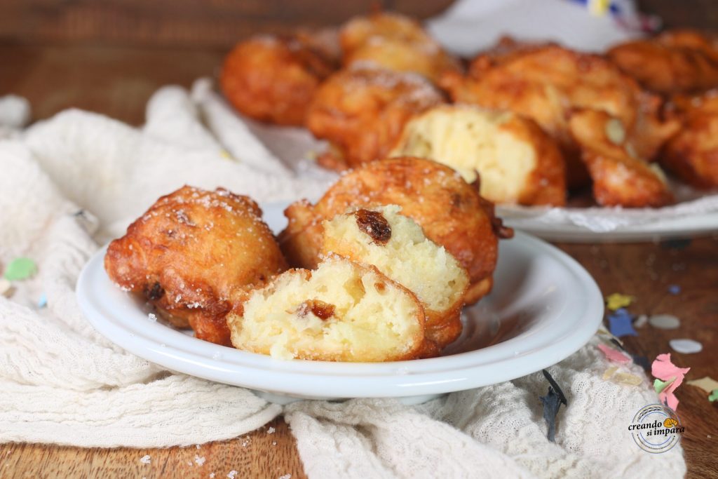 One of the most famous carnivals in the world is the Venetian Carnival, which I am fortunate to experience. During this event, alongside the inevitable Crostoi (the galani or chiacchere), apple and raisin fritters are served in the various “bacari” in the Venetian alleys, as well as on the mainland. Unlike the classic fritters made with a sort of choux pastry, Venetian fritters are made with brewer’s yeast. Sure, there’s the rising time, which extends the preparation of these divine bites a bit, but it’s absolutely worth it. I made them rather large; the classics are little bites made with a teaspoon, so choose the size you prefer. If you’re looking for more recipes for carnival days, try the grandma’s chiacchere or the carnival fritters. You can try the large fritters to fill or the Nutella ravioli or even the simple castagnole.