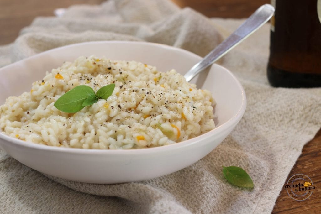 An unusual first course, customizable using your favorite beer, beer risotto is really easy. At home, we love risottos, creamy and enveloping. Preparing them requires a certain care and, maybe just in my head, a good dose of love. I have now made risotto with anything, but I was missing beer, and I had to remedy that. It was really liked.