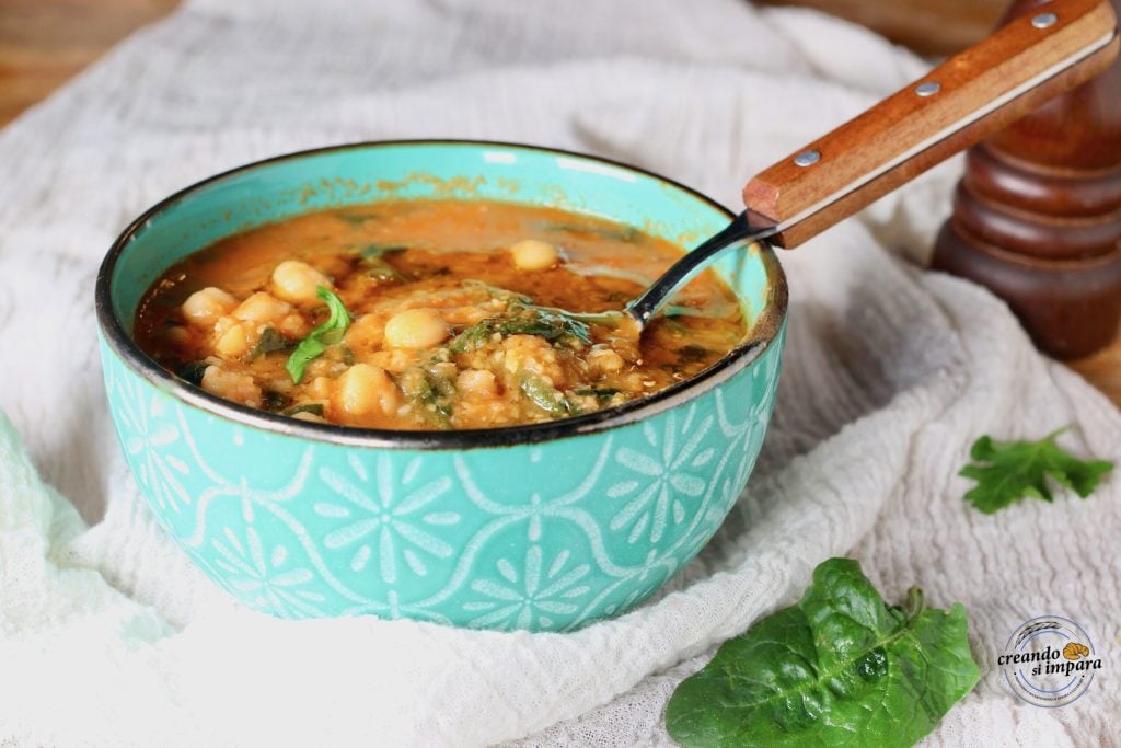 Chickpea and spinach soup, a simple, economical, tasty, and nutritious soup. A dish that warms the heart and more, comforting when served hot, but I can assure you that it is also delicious cold. I used dried chickpeas soaked overnight, but if you are in a hurry, canned chickpeas, drained and rinsed, are just fine, just like in the classic chickpea soup.