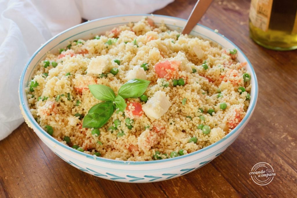 Fresh, light, and easy to prepare, the couscous salad with tomato, peas, and mozzarella is the ideal companion for hot summer days. We can also make plenty to share during outings with friends, at the beach, in the mountains, or outdoor picnics, but it’s also perfect to bring to the office or serve to your family for a colorful and fragrant dish. Let’s get to work and prepare it together with tomato, peas, and mozzarella.