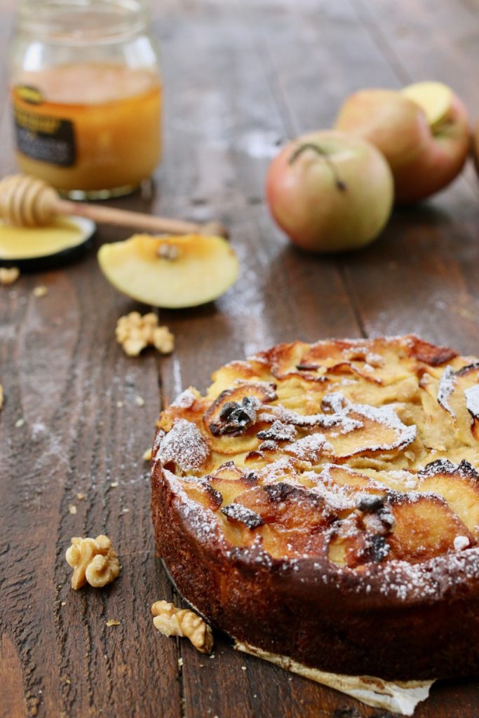 The invisible cake is called so because it is very apple-y, meaning the amount of batter compared to the apples is really minimal. The invisible apple, honey, and walnut cake is a version that I enriched with these last two ingredients and fell madly in love with it. I belong to the category for which apple cake cures everything, almost more than chocolate, so eating it with a good cup of citrus tea really warmed my heart. If you belong to this category too, you must try it. Let’s get to work and prepare the invisible apple cake together.