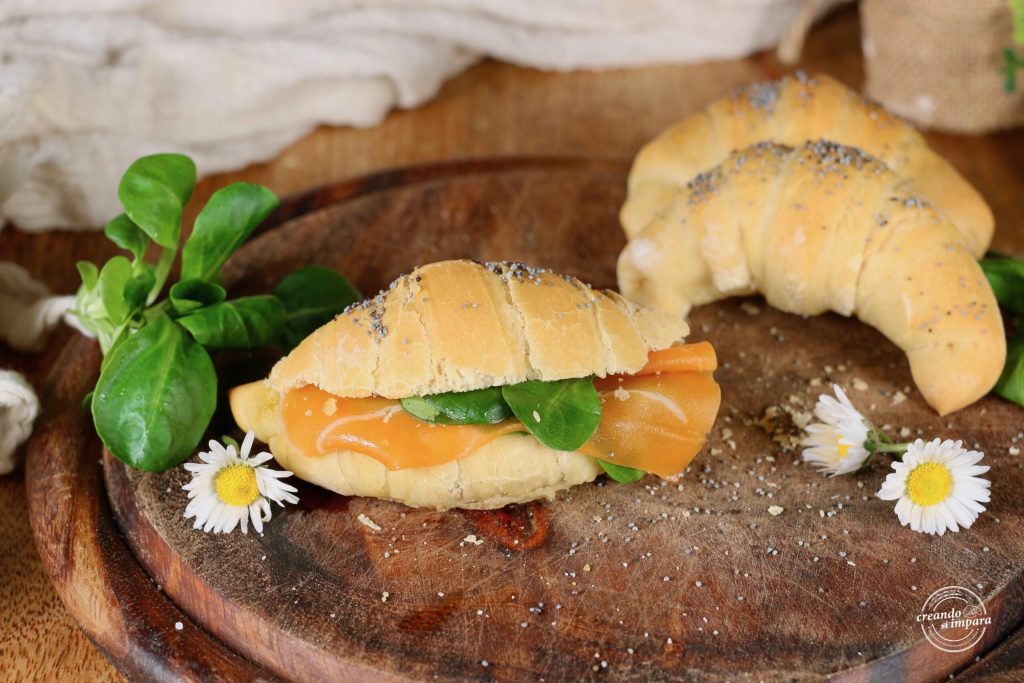 When the croissants are well-risen, brush with milk, sprinkle with poppy seeds, and bake in a preheated oven at 350°F for about 25 minutes. For a post-bake filling, let them cool, cut them in half, and enrich with whatever you like, I opted for vegan salmon and lamb’s lettuce.