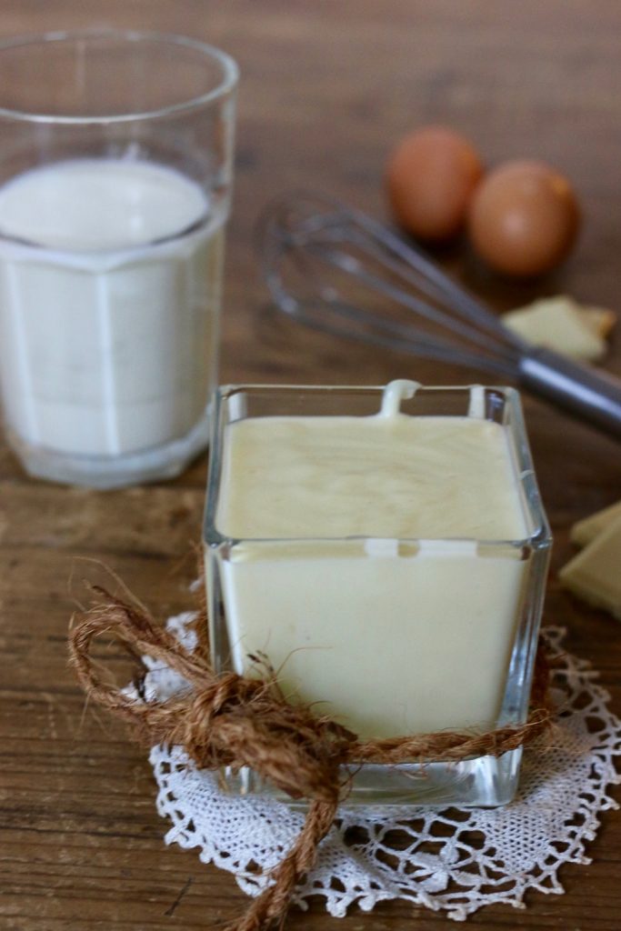The white chocolate custard is an even creamier and velvety cream that I love, easy to prepare, perfect for decorating cakes, to be enjoyed with fruit, especially red fruits, to be flavored with lemon or vanilla, to be served spooned well cold with dry pastries, delicious and delicate. Prepare it in advance with good whole milk and serve it well cold for a different snack or to end the meal with an irresistible cream.