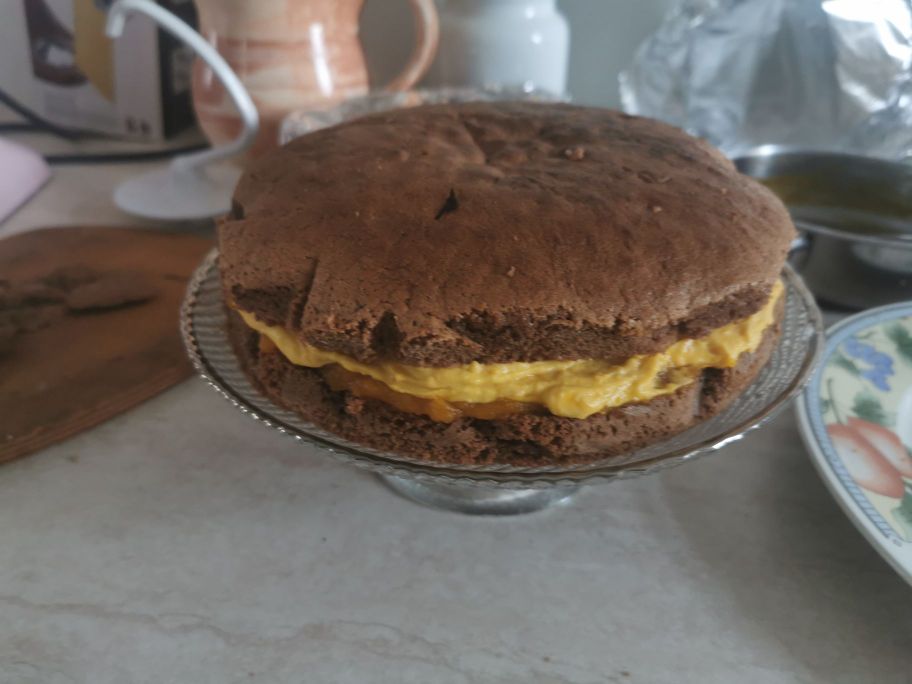 A chocolatey delight, filled with pumpkin cream, truly fantastic. The chocolate and pumpkin combination works perfectly, it has become a cake to remake. The colors and aroma of this cake are a snapshot of autumn. If someone asked me to choose an autumn recipe, I would remake this one a thousand times.