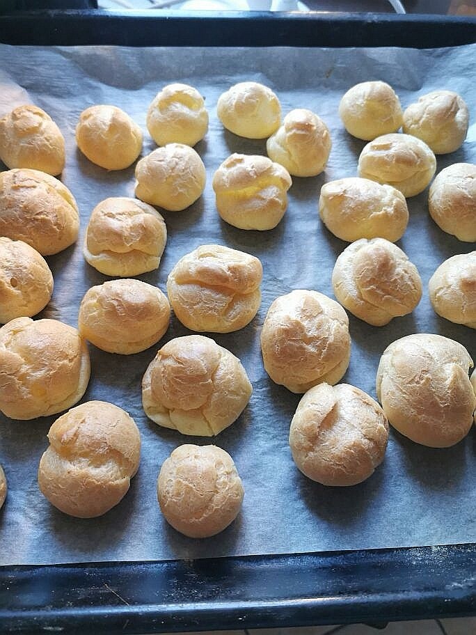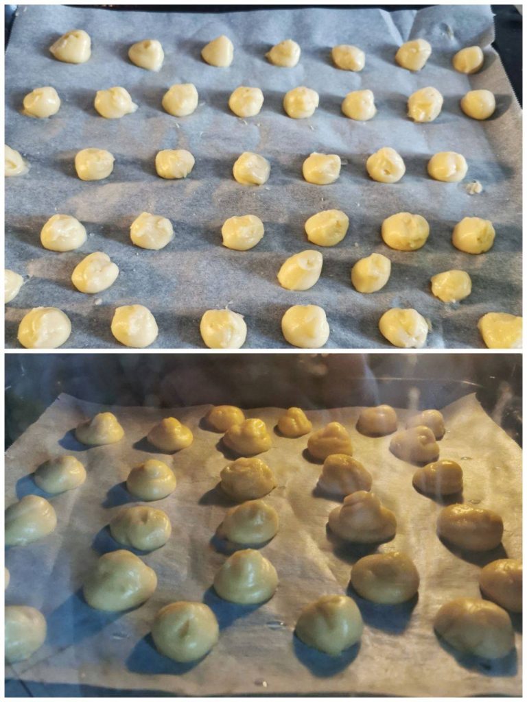 Preheat the oven to 392°F (200°C) and bake the puffs in the middle section. Bake at 392°F (200°C) without opening the oven for about 20 minutes, during this phase you will see the puffs puff up and turn golden. Remove your Choux pastry puffs, ready to be filled.