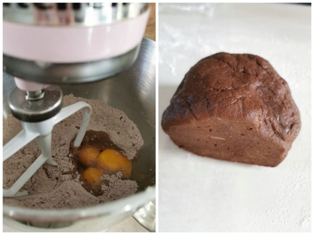 • Let’s start preparing the fresh egg pasta, to the dough you only have to add the cocoa. Once you have the dough, wrap it in plastic wrap and let it rest in the fridge for about half an hour