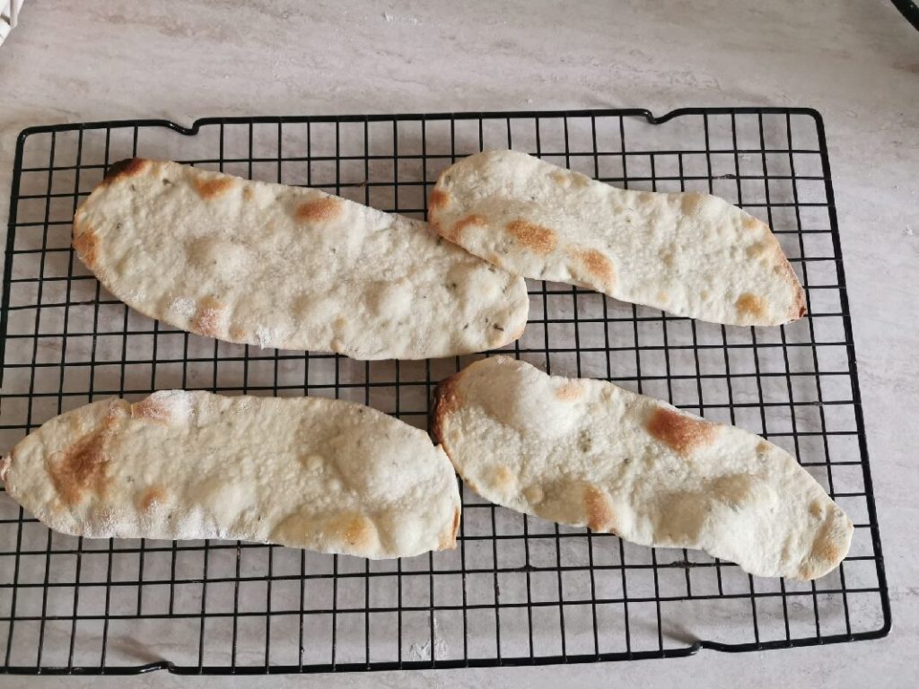 Remove from the oven and immediately cool on a cooling rack. Cook this way a few pieces at a time until finished. Once cooled, they can be stored sealed in cling film or a plastic food bag for 4 or 5 days.