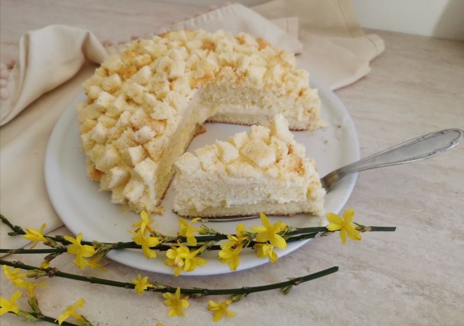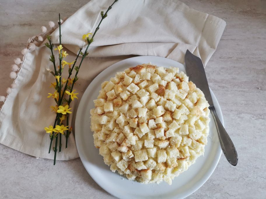 Mimosa cake is a simple dessert to make, but with great visual impact. Its soft sponge cake base perfectly matches the creamy delicacy of diplomatic cream, creating a harmonious and irresistible blend of flavors. The final touch, the decoration with sponge cake pieces that resemble mimosa flowers, makes this dessert a true masterpiece of taste and beauty.
