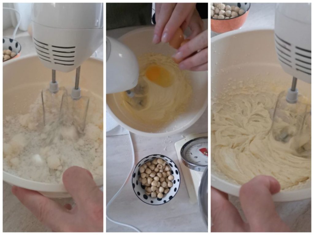 • Add the salt, rum, and eggs one at a time, not adding the next egg until the previous one is well blended. Continue beating with electric whisks. Then incorporate the almonds and hazelnuts, mix well until the dough is smooth and soft