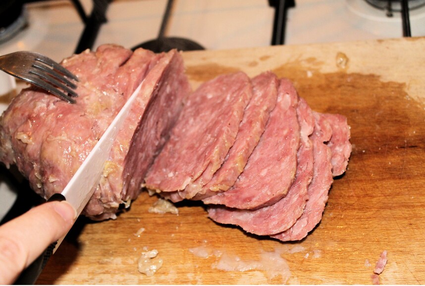• Cooking the head. It’s better to buy it ready for cooking from the butcher, that is, already peeled and deboned, complete with vegetables. If they are missing, fill it with 1 carrot, a stalk of celery, and a small tuft of parsley, and tie it in several places. In a pot, bring 2 qt of water to a boil, add the herbs (onion with cloves, celery, carrot, parsley, and bay leaf) and a pinch of salt, add the head, which must cook for 2 and a half hours. At the end of the cooking, untie it and cut it into slices and serve hot