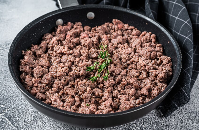 In a pan, sauté the finely chopped onion, add the garlic and parsley, the meat, and the crumbled sausage, and let it cook on low heat.