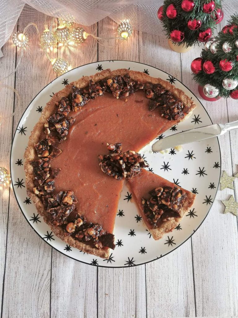 Unfortunately, persimmon is a fruit that is not talked about much, and there are very few recipes where it is used, which is a real shame because it is a really good and versatile fruit. In this recipe, it is in a delicious form, that is, jam, enclosed in a shortcrust pastry shell, paired with a delicious brittle. It seemed original to propose it as a slightly different Christmas dessert, to pleasantly surprise your guests
