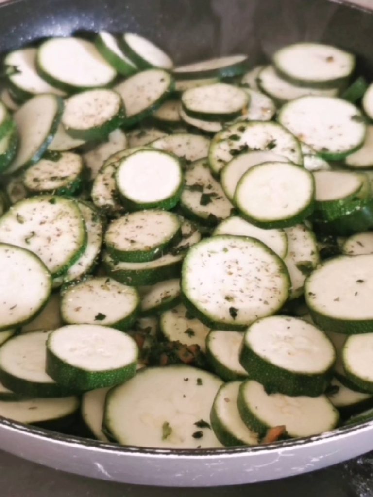 Wash and slice the zucchinis into rounds about 1/4 inch thick. In a pan with a knob of butter, sauté the zucchinis, add some spices to taste, for about 10 minutes. Let cool slightly, and finally add salt.