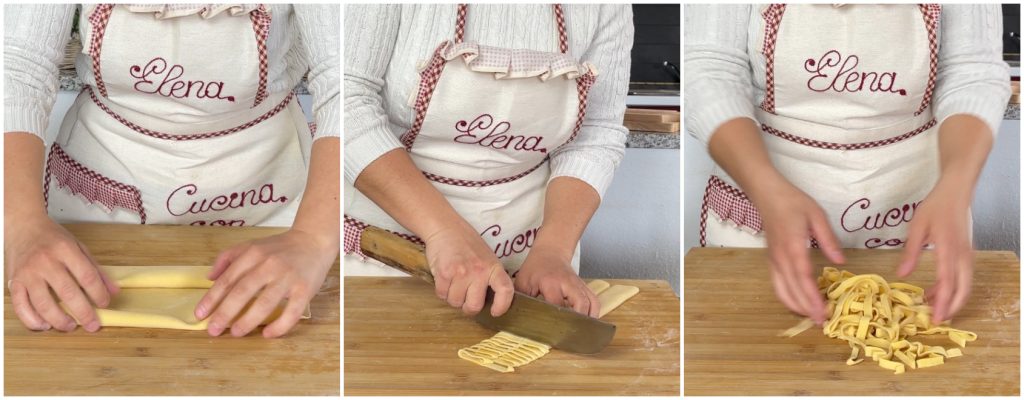 Now roll the sheet onto itself and cut the tagliatelle with a knife or with the appropriate pasta machine cutter.