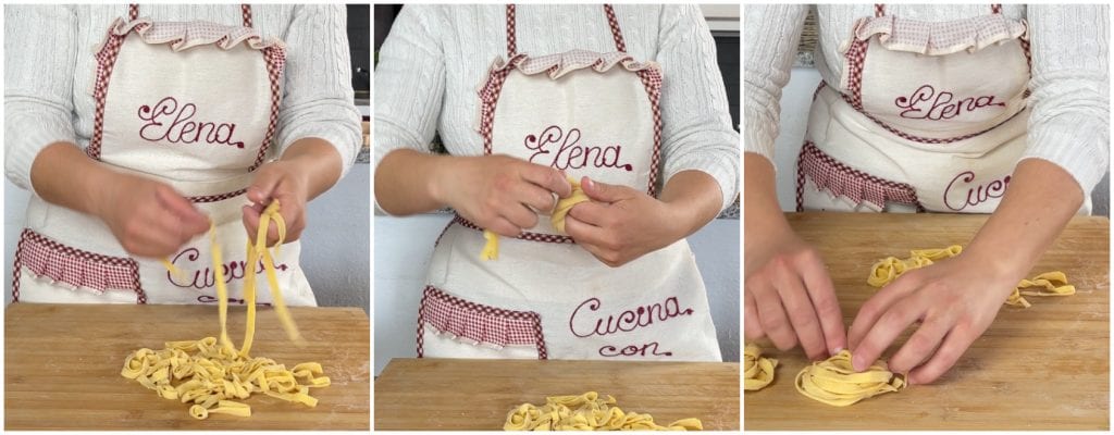 Take a few tagliatelle, about ten, and roll them onto themselves to form the classic nests.