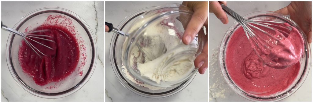 • Pour the eggs into a bowl. Add the blended red beetroot and salt.