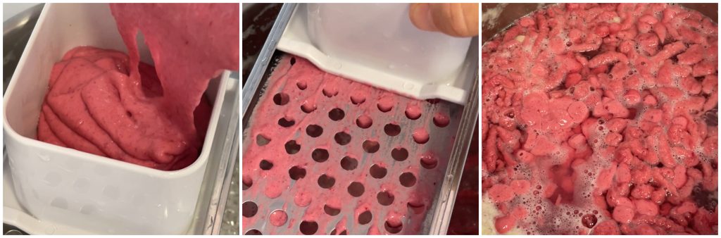 Beetroot Spätzle is a typical first course of the Tyrolean tradition enriched with steamed and then blended red beetroot.