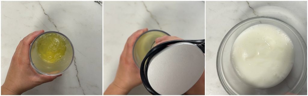 Whip the yolks with an electric mixer until you get a frothy and light mixture.
